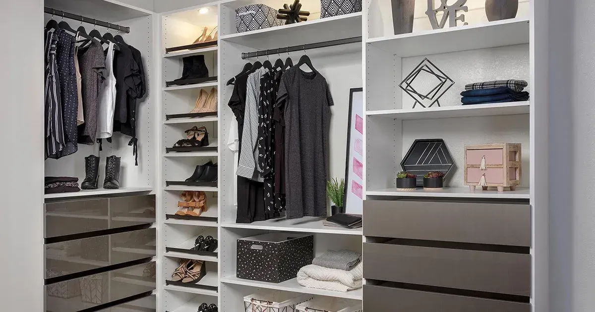 Transform your closet into a sophisticated dressing room with our bespoke storage solutions and luxury finishes