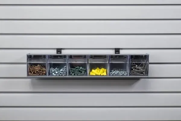 Your shelves will hold a variety of items. They can attach to a slatwall or gridwall system, or they can be wall-mounted.