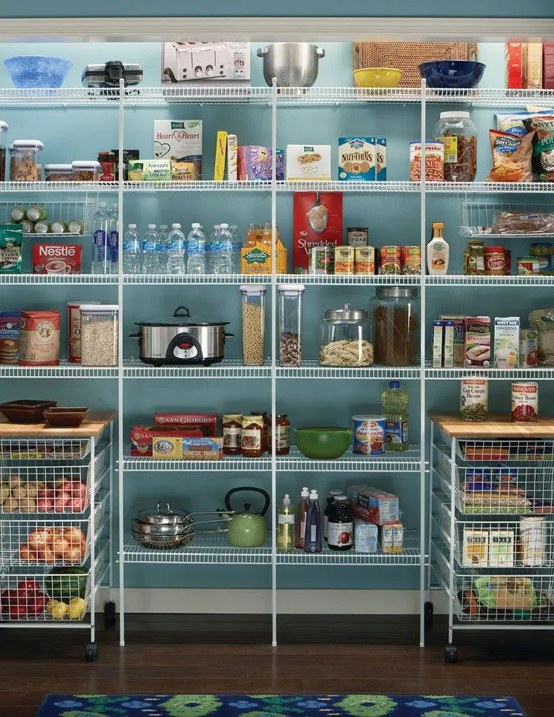 Our kitchen pantry shelves are easy to keep organized. You won’t lose items to the dark recesses of your pantry with our pull-out shelves; instead of fumbling where you can’t see, you can simply slide the shelf out like a drawer, allowing you to access everything easily. Bins and baskets help keep small items organized, too.